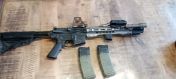 Angeboten wird eine VFC M4 GBB die auf Sailent Arms umgebaut wurde gechoppter Frontgriff Eotech Klon mit SNAP Verschluss grün rot umstellbar Surefire c600 Klon und Laser peq diverse Ersatzteile vor dem Umbau gibt's dazu zwei pmag magazine von VFC dazu alle dicht Lauf wurde gekürzt für den Sailent Arms Umbau .
