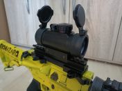 Hier verkaufe ich zwei Flip Up cover für runde reddots. Sie sind federunterstützt, so muss man die klappen nur auf drücken und schon schnappen sie hoch. Sie lassen sich ganz einfach aufs Visier drauf schieben, die Innenmaße der Cover sind 38mm.