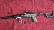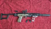 Achja die 3d gedruckten Teile gebe ich gerne mit dazu, der Frontgriff sollte noch lackiert werden, dazu kam es aber nie. Das Visier, die Magpul Slingaufnahme, sowie der schwarze Schalldämpfer sind nicht bestandteil des Verkaufs. kann man aber gerne drüner schnacken.