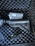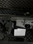 Es sind viele Sachen extra drauf, reddot Holo Visier, vordere Griff, Schalldämpfer, dummy Licht, kleines reddot Visier.