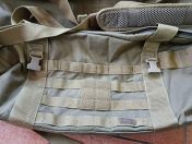 Sie besitzt einen großen Bereich und eine kleine Seitentasche. An den Außenseiten befinden sich das Molle-System und auch Klett zum Befestigen weiterer Taschen und Zubehörteile.