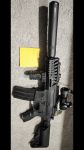 Die Waffe mit den abgebildeten Anbauteilen, 6 MidCap Magazinen.