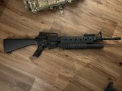 Hallo, verkauft wird meine E&C M16 ca. 1 Jahr alt hing nur an der Wand wurde also nie bespielt dazu gibt es das original Magazin sonst keine Veränderung.