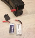 Die Lipos sind eigentlich 1 Lipos, die zusammen gefügt wurden um mehr Kapazität zu haben. Das Magazin darf nur mit 3,7-4,2 Volt betrieben weden, bei 7,v Lipos brennt die Platine durch!