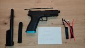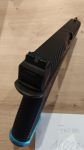Wie auf den Bildern zu sehen verkaufe ich die SSE18 + Magwell in Blau inkl. einem 29 Schuss Magazin + einem 100 Schuss Magazin und einem Akku, leider ohne passendem Ladegerät.