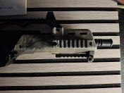 Das Hauptgehäuse besteht fast ausschließlich aus stabilem Verbundkunststoff das eine leicht strukturierte Oberfläche besitzt. Die obenliegende 21mm Schiene dient zur Montage von Zielgeräten und ist gleichzeitig als Tragegriff verwendbar. Durch die Länge von 250 mm hat der Schütze genug Platz um ein Leuchtpunktzielgerät perfekt positionieren zu können.