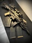 Extern bekommt man die angepassten Railguards; einen simplen Schalldämpfer (nicht auf dem Bild), die originalen Iron Sights und der Originale Griff (der Magpul auf dem Bild bleibt bei mir).