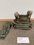 Die Weste ist gebraucht aber heile. Sie ist ausgestopft, um die platten zu simulieren. All das Zubehör auf den Bildern ist mit dabei.