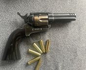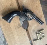 Vor dem Verkauf hab ich den Revolver getestet und leider festgestellt, dass er undicht geworden ist . Die CO2-Kapsel gast mittelschnell aus. Daher verkaufe ich ihn als defekt..