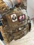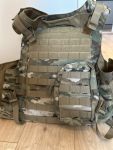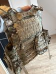 Frontal hat er 3 Magazintaschen, seitlich li eine kleine Tasche und rechts eine größere
