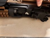 Hab’s mit Zweikomponentenkleber wieder festgeklebt. In dem Zuge habe ich noch einen neuen Piston(mit Stahlzähen) einen neuen Pistonhead, ein neues Nozzle und einen neuen Zylinder eingebaut. Zur Leistungsreduzierung habe ich noch eine schwächere Feder verbaut was dem ganzen so ca 1,7 Joule gibt. Hab sie außerdem auf T-Stecker umgelötet und das aus dem Handguard rausgelegt damit man nicht immer die 6 Schrauben lösen muss
