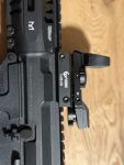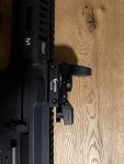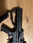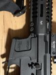 Das G&G Airsoft Gewehr ARP 9 0.5 J AEG ist eine vollautomatische Maschinenpistole mit maximal 0,5 Joule Schussenergie. Die Airsoft ist durch ihre kurze Bauweise ideal als Backup oder innerhalb von Gebäuden einsetzbar. Kimme und Korn können eingeklappt und bei Bedarf gegen eine Zieloptik getauscht werden. Der Schaft ist ausziehbar, um eine optimale Schusshaltung zu gewährleisten. Der angeraute Pistolengriff liegt angenehm in der Hand, die Waffe lässt sich auch mit Handschuhen einfach bedienen. Die Fullautofunktion kann ohne zusätzliches Werkzeug auf 3er-Burst umprogrammiert werden.