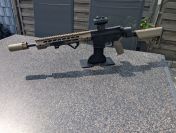 Airsoft-Waffenständer passend für M4/AR15-Modelle. Der Ständer ist zerlegbar und lässt sich optional personalisieren.
