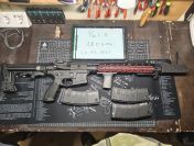 Optisch wurde sie leicht angepasst: Im Handguard ist ein rotes Band eingewebt (rein kosmetisch, lässt sich problemlos wieder entfernen). Zusätzlich ist vorne ein selbstgebauter Schalldämpfer montiert.