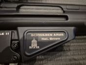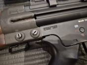 Außen habe ebenfalls ich alles umgebaut. Damals gab es noch kein G3 mit Holzteilen. Aufnahme usw. sind alles originale Teile aus Stahl, die auf Airsoft angepasst wurden. Der Schaft ist aufgebohrt, damit Akkus besser passen. Damals musste man noch 9,6v unterbringen können.