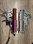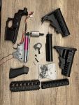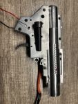 Ich habe die Waffe selbst aus erster Hand erhalten aber sie passt einfach nicht in meine Sammlung. An sich guter Zustand, wenig gelaufen, kaum Gebrauchsspuren. Kein „used look „ aber es war ein gearset verbaut das am sektorgear bearbeitet wurde. Da das nicht den Marktplatzrichtlinien entspricht habe ich das gearset ausgebaut und stattdessen ein G&G gearset dazugelegt. Da ich die Waffe loswerden will werde ich den ganzen Spaß nicht wieder zusammenbauen. Da kann sich der neue Besitzer ganz nach belieben dran austoben. Es ist ein EBB Modell und das System funktioniert auch. Es ist eine simple switchunit mit mosfet dabei. Vorher war ein Gate Aster drin aber das brauche ich für ein anderes Projekt. Die Gearbox verfügt über ein Federschnellwechselsystem mit Kugellager. Zu der Waffe habe ich einen RIS hanguard von TM bekommen den ich mit abgebe. Desweiteren ist eine 2. schulterstütze dabei. Die Waffe kommt zerlegt ohne Koffer aber vollständig mit allen Pins und Schrauben. Als Mängel muss ich erwähnen das die arretierung vom dustcover fehlt und der verschlussfanghebel unvollständig ist. Dieser ist zwar vorhanden aber die Brücke welche unter der gearbox den Hebel betätigt welcher das Blech festhält fehlt. Da heist man kann das hopup nur verstellen wenn man den ladehebel gezogen hält. Motor, gears und hopupkammern sind von einer CM16 von G&G. Ansonsten schaut euch einfach die Bilder an oder schreibt mich an…