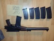 -Die Waffe samt verbauten Umbauteilen innen und außen