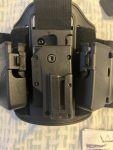 Er besitzt eine Plattform , wo ein offener Universal Holster von Novritsch montiert ist( um diesen zu nutzen braucht man noch den Adapter für die Pistole , schaut mal auf die Seite von ihm). Dazu habe ich noch 2x2 Pistolen Pouches drauf montiert. Somit kann man Pistole mit ingesamt 5 Magazin mitnehmen.