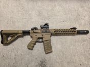 Verkaufe eine absolut neuwertige und unbespielte G&G CM 16 SRL in der Farbe Desert. Die Waffe wurde vor 10 Monaten neu gekauft, umgebaut, auf Funktion getestet, und hängt seitdem an der Wand da mir die Zeit zum Airsoft spielen fehlt.