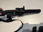 Ich habe diese Waffe vor einem Jahr gekauft, seid dem habe ich sie einmal verwendet. Alle inneren Teile sind original. Es wurden ausschließlich optische Veränderungen vorgenommen. So habe ich das auf den Bildern zusehende red dot, sowie den Sling angebracht. Das Akku Fach, das auf den Bildern zu sehen ist, wurde 3d gedruckt und ist größer als das Originalteil, damit man alle Akkus verwenden kann. Das Original wird jedoch mitgeliefert. Die drei auf den Bildern zu sehende Magazine sind mit enthalten. Auch der Karton, sowie die Anleitung sind mit dabei.