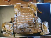 Merkmale: Osprey Plattenträger der britischen Armee/ Schulter+ Kragen- Schutz/ Poches: 3x Doppel Magpouches, 2x Canteen, 3x Mehrzweck/ Einschubfächer für Sapi- Platten/ leichte Gebrauchspuren