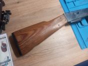 original Schichtholzschaft mit Platz für Akku, hält sehr fest am Body