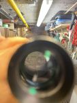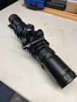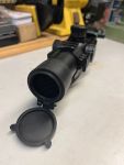 hat ne Vergrößerung von 1,5-4 Fach und ne 30er Linsenbreite. Zoom erfolgt ob drehen des Ringes am Scope. Zielkreuz ist bin mehreren Farben beleuchtbar mittels Batterie. Killflash und Mini Wasserwaage ist vorhanden. Leichte gebrauchsspuren ansonsten komplett funktion gegeben.