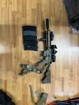 Die Waffe hat einen kurzen Griff, eine PEQ Box mit Taschenlampe, ein Rotpunkt mit Magnifier, einen sling und 5 Ersatzmagazine bekommen. So wird sie auch verkauft. Wenn man mal hochrechnet sind alle Teile plus die Waffe deutlich höher im Preis als der den ich verlange.