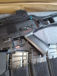- Hallo zusammen zum Verkauf kommt mein G36c von Golden Eagle, gekauft bei Begadi. Das Gerät war 2x mit mir auf den AS days,insgesamt 3x auf dem Feld und hat gut performt. Ende letzten Jahres war sie wegen eine kleineren Defekts nochmal bei Begadi zum Service, dabei wurde die komplette Verkabelung neu gemacht, sowie Piston und Pistonhead getauscht und eine neue Nozzle verbaut. Von mir kam noch ein Maple leaf Omega Nub rein. Den original Nub lege ich bei. Des weiteren habe ich am Handguard noch die separat erhältlichen Picrails verbaut. Das Gerät läuft auch mit hoher Kadenz mit 11.1 lipos, dabei sind noch 6 Mags (zwei 85 Schuss von GE und 4 140er von Begadi), und ein automatisches Trommelmagazin mit 1200 Schuss kapa.