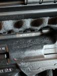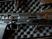 Die Waffe habe ich selbst hier im ASVZ erworben. Der Vorbesitzer hatte ihr einen rot/weißen Paintjob verpasst. Da ich diesen nicht abbekommen habe, habe ich ihn überlackiert. Leider nicht gerade perfekt. An einigen Stellen kommt es durch oder hat "Nasen" gezogen.