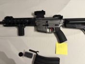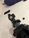 Dazu gibt es auch noch ein Begadi Reddot mit Linsenschutz und Zubehör, ein Stahlblech Magazin und einen Begadi Frontgriff. Das Dustcover hab ich entfernt weil es von Anfang an nur probleme gemacht hat (siehe Bilder). War nur 2x auf einem Spielfeld dabei. Paintjob sollte einen "used look" geben und ist mit Senotherm Ofenlack gemacht worden.