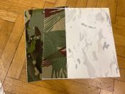 Selbstklebende Folien aus Corduraartigen Material. Es gibt vorgeschnittene für Peltor Comtacs und ungefähr A4 große zum selbst zuschneiden. Farben wie auf den Bildern ersichtlich. Preis pro Stück.