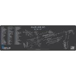 Noch originalverpackte Unterlagsmatte aus 3mm dicken Gummi mit schöner Explosionszeichnung des Steyr AUG darauf. ca 8x30 cm groß