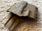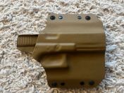 Zum Verkauf steht ein Warrior Assault Systems Ares Outer Waistband Holster für alle G17/19-Pistolen ohne Lampen welchen ich aus einem Tausch erhalten habe. Der Holster befindet sich im sehr guten Zustand, und kostet neu zwischen 80-90€. Er hält insbesondere TM, WE und VFC-Pistolen zuverlässig und macht sich gut für minimale Battle Belt-Konfigurationen, oder lässt sich mit Kabelbindern oder MOLLE-Schlaufen auch als Brustholster einfach verwenden. Mit der unteren Öffnung nimmt er auch Low Profile Suppressor oder Muzzle Devices ohne Bitten sofern diese die Dimensionen der Glock nicht übersteigen.