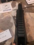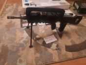 An der Unterseite wurde eine Schiene für Haltegriffe und oben auf dem Bügel eine Rail für Zieloptiken angebracht . Die FAMAS Standardvisierung kann man wohl als den größten Witz bezeichnen.