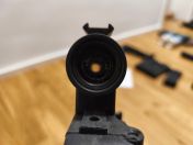 Auf den Bildern ist eine originale BW-G36-Zielhilfe drauf, das ist schon das Beste daran. Das funktioniert mit neuen Akkus.