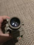Für einen Klon erstaunlich scharfes Absehen, von welcher Firma weiß ich leider nicht. Oben drauf noch ein RMR / Reddot, welches ich nie benutzt habe, entsprechend war immer die Kappe drauf.