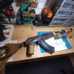 Frontset mit Ak 47 Holzhandschutz mit Rohrschelle gesichert,da der AKM Trageriemenhalter fehlt