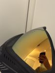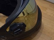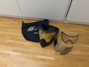 Mit dabei sind noch ein klares Glas, ca. 2 mal bespielt. Und das Originalglas der Maske, silber spiegelnd, ich glaube kein mal bespielt.