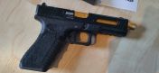 ich möchte mich von meiner Glock trennen. Das wichtigste zuerst: diese Waffe läuft kaum bis gar nicht, ist nicht wirklich zuverlässig. Die Magazine entladen meist einfach das Gas. Woran es liegt ist mir nicht schlüssig. Wen das nicht stört oder diese Replika gern als Ersatzteil-Lager nutzen möchte darf gern zugreifen. Sie wurde bereits gebraucht hier im ASVZ erstanden, hat einige deutliche Abnutzungsspuren, vor allem an den Läufen zu erkennen. Mit dabei sind 2 Magazine, diese sind soweit dicht, ein weiterer Barrel zum tauschen und ein 3 Druck Frontset. Zudem verfügt die Glock über einen Slide der RMRs direkt montieren kann. Bei Fragen gerne anschreiben. Versand ist im Preis mit drin.