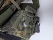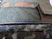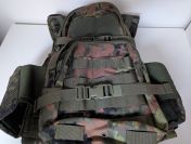 Plattenträger in Flecktarn, gefüllt mit Schaumstoffplatten. Größe lässt sich an den Schultergurten und seitlich etwas verstellen.