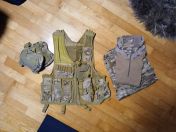 1× Mil-Tec (Grösse XL) mit integrierten Knie- und Ellenbogenschonern (kein Plastik) und einer passenden Tactical Vest (ebenfalls von Mil-Tec), Plattennträger-Weste mit Cummerbund (ohne Platteneinsätze) und zusätzlichem Beinholster. Neuwertiger Zustand.