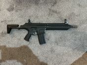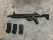 Eine schöne und Zuverlässige Airsoft. Sie wurde nur maximal 5 mal benutzt, vorbei sie nur einmal im Wald unterwegs war. Inbegriffen sind 3 Magazine und ein Lithium Akku. Es sind keine Kratzer vorhanden. Sie sieht aus wie neu und ist technisch einwandfrei!!!