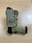 Original IMI Defense Holster: Passformgenaues Polymer-Holster (NP ca. 35 €). Die Waffe sitzt bombenfest und lässt sich per Zeigefinger-Release schnell ziehen.