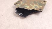 Das Holster hat auf der Außenseite einen Flecktarn Cordura Überzug (aufgeklebt) und ist damit IR sicher.