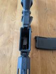 Äußerlich verbaut ist eine slingmount endplate, ein PTS Triggerguard und ein Magpul MOE K Griff passend in schwarz. Alles andere ist Stock.
