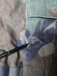 Auf der Außenseite der Linken Beintasche ist der Stoff etwas eingerissen. Lässt sich bei Bedarf schnell mit Nähzeug flicken.