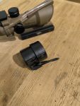 Zum Verkauf steht ein Acog Clone in Tan mit allen Markings. Es hat eine 4x Vergrößerung und ein Chevron Absehen in rot. Beleuchtung durch Lichtsammler.
