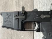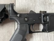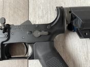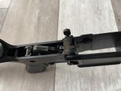 - Ino Lower, leider B-Grade, mit bekannter Ausfräsung am Bolt Catch, und leider auch ein kleiner Gußfehler am Mag-Catch-Button. Beim Trigger Pin fehlt die Sicherung und fällt beim betätigen heraus. Der Block mit dem safety detent/spring fehlt, der selector daher auch lose und fällt raus. Sonst soweit vollständig, der Stock ist ein einfacher AEG Teil, vermutlich von VFC.