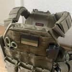 Der Plattenträger ist in gutem Zustand und kommt inklusive der Schulterpads, die alleine auch schon 32€ gekostet haben.